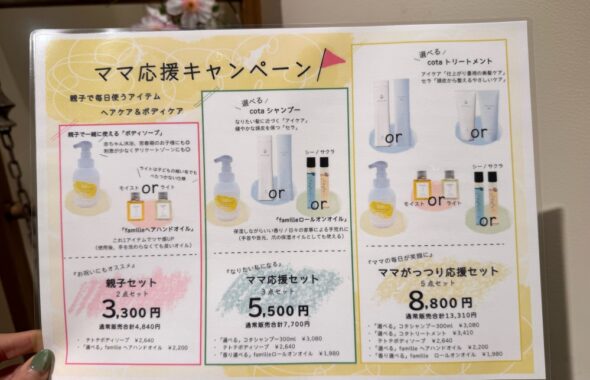 〈こだわりの3つのポイント〉 ① 毛髪再構築! 「N.ケアリファイントリートメント」 ② 毛髪改善! 「COTAコタヘアケア アイテム取扱い」 ③ 透明感・ツヤ・高発色! 「N.オーガニックカラー」