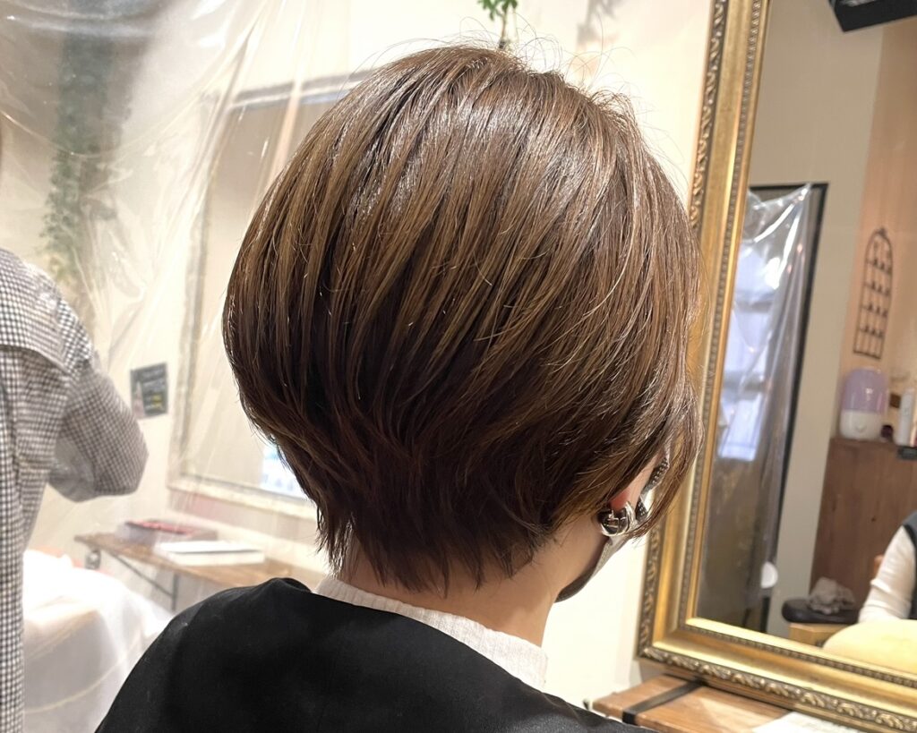 襟足の髪がキュッとまとまっていて、段差がそこまで無くて丸みのある”コンパクトショート”のオーダーが増えています(*^^*)