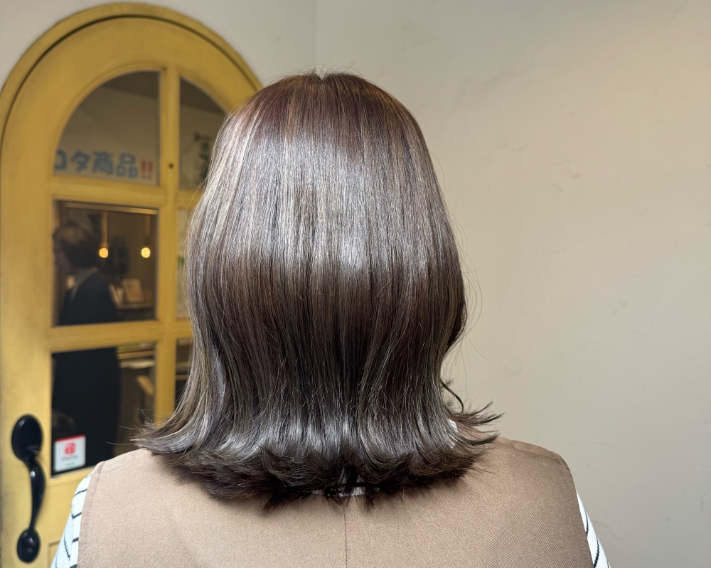 日本人特有の赤みをしっかり抑えるマット系にベージュのまろやかさが加わることで髪もふんわり柔らかい印象になります♪♪