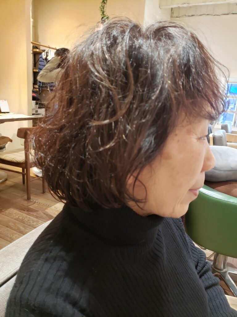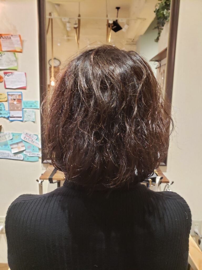 パーマのようなお癖があり、まとめている方が楽だった為、髪型を変える事が無かったのですが、今回「ちょっと変えてみようかな~」というご希望をいただきましたので、しっかり、バッサリ切らせていただきました!