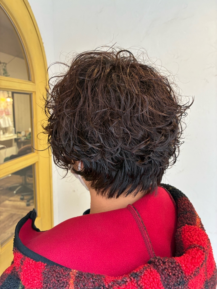 ふわふわとしたパーマで襟足はきゅっと