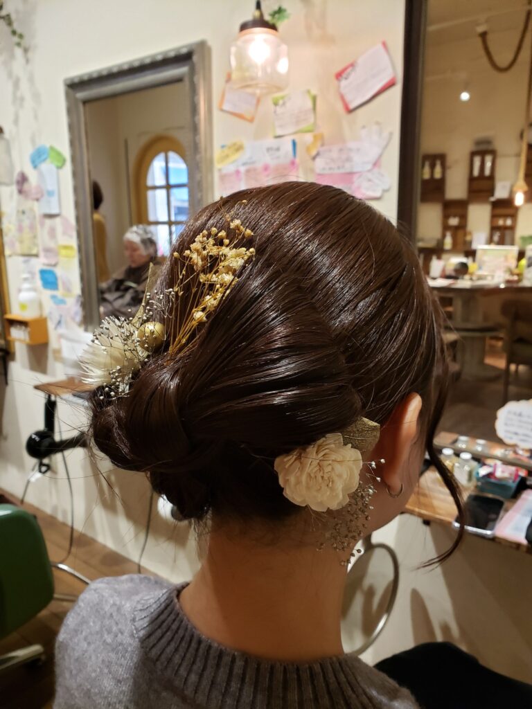 ドライフラワーの髪飾りもとてもかわいくて、お洋服にとてもマッチしていました♪ご卒業おめでとうございます!