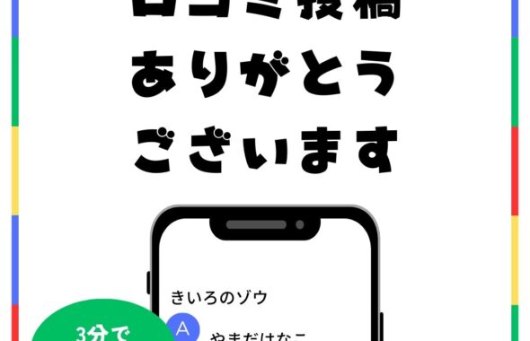 【口コミありがとうございます】Google口コミ 励みになります きいろのゾウ
